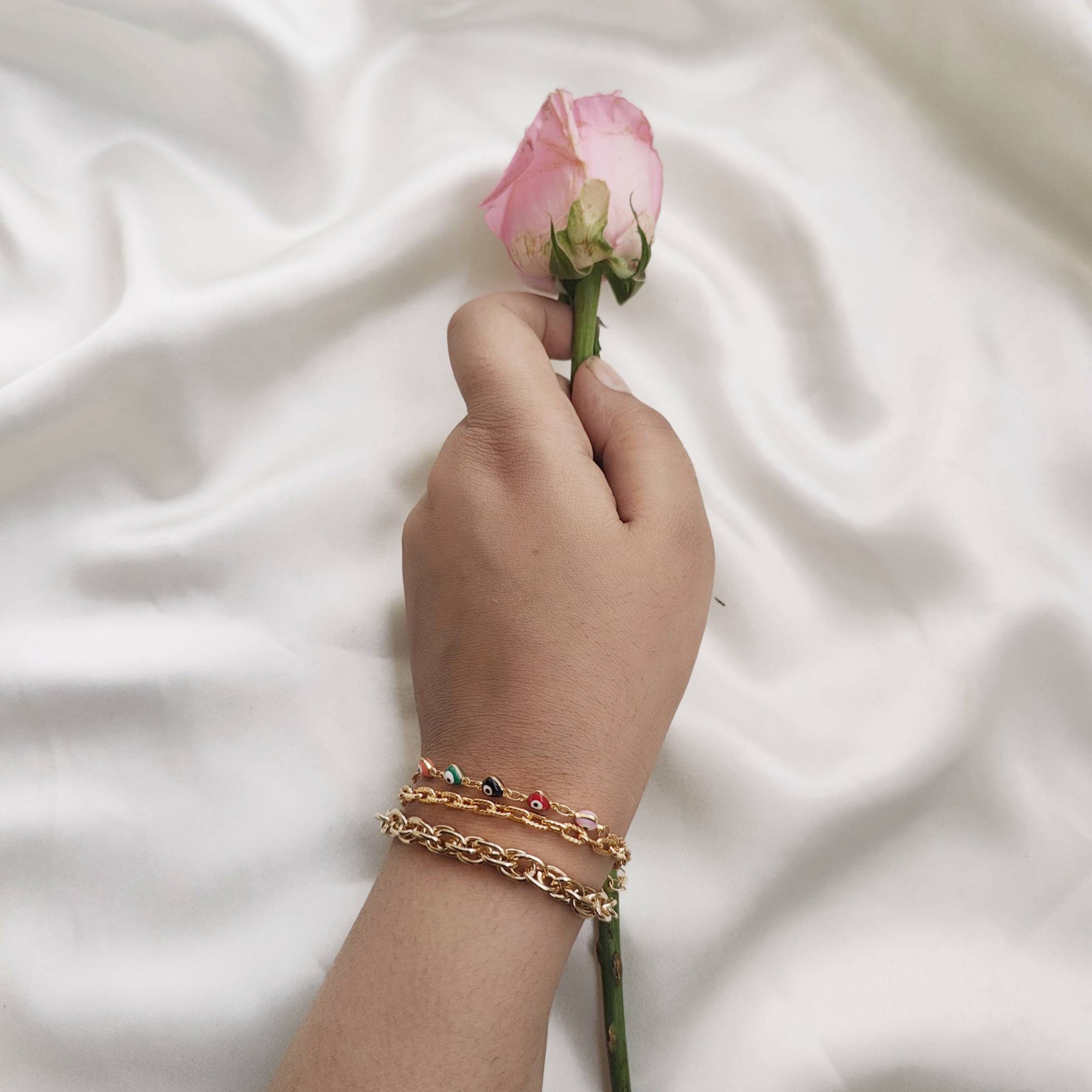 Tags: anti tarnish jewellery, evil eye bracelet, metallic jewellery